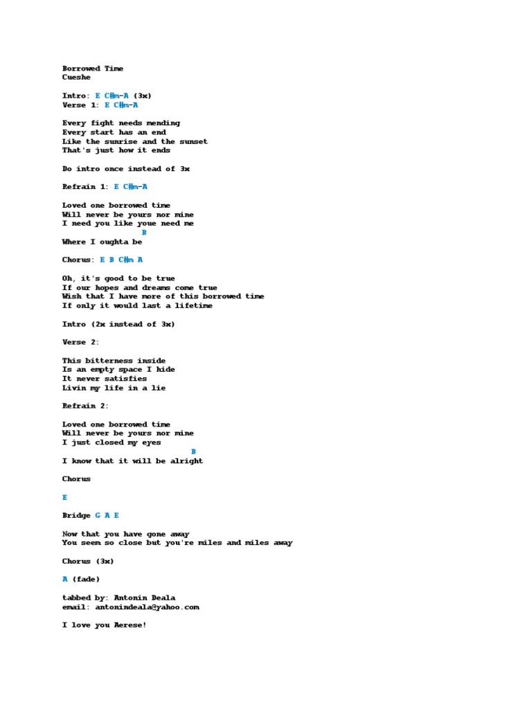C F Huwag kang mag-alala G C Ako lang ang naniguradong C F G Am7 Wala nang magpapa-gwapo sayo ohhh. Eron Reyes e-mail me. Kaya wag mag-alala Ipikit ang yong mata tahan na Pahinga muna ako nang bahala Labis pa sa labis ang yong nagawa Papa pahinga muna Ako na Lataratara lataratara Lataratara lataralata Lataratara lataratara Lataratara lataralata Di ko na sasayangin pang mga Natitirang paghinga Tutungo na kung san naron ang mahalaga Kahit na kailan pa may di mawawala.