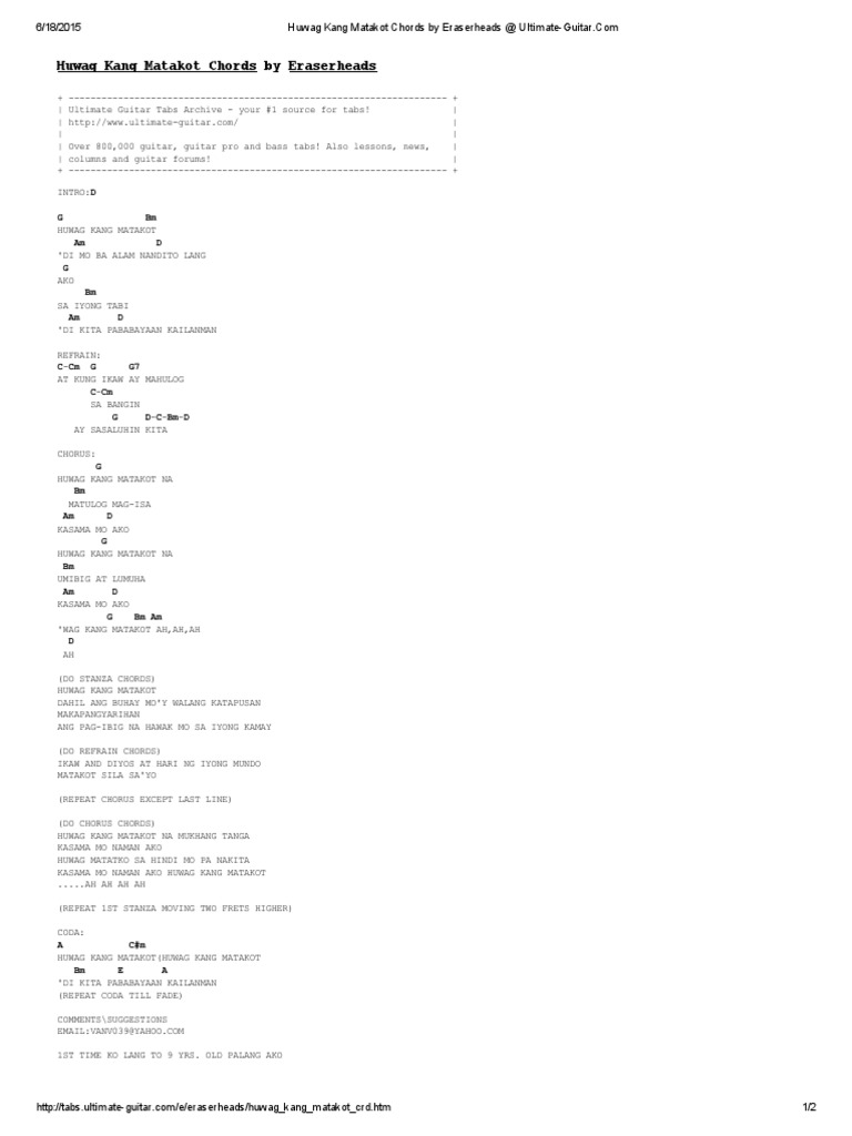 Huwag Kang Matakot Chords By Eraserheads At Ultimate Guitar Pdf Celtic Musical Instruments Musical Compositions
